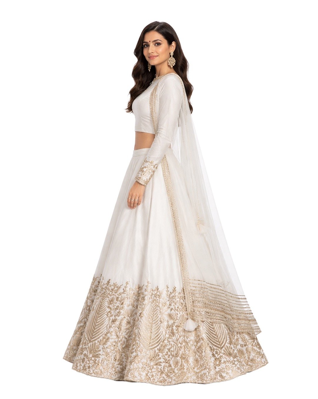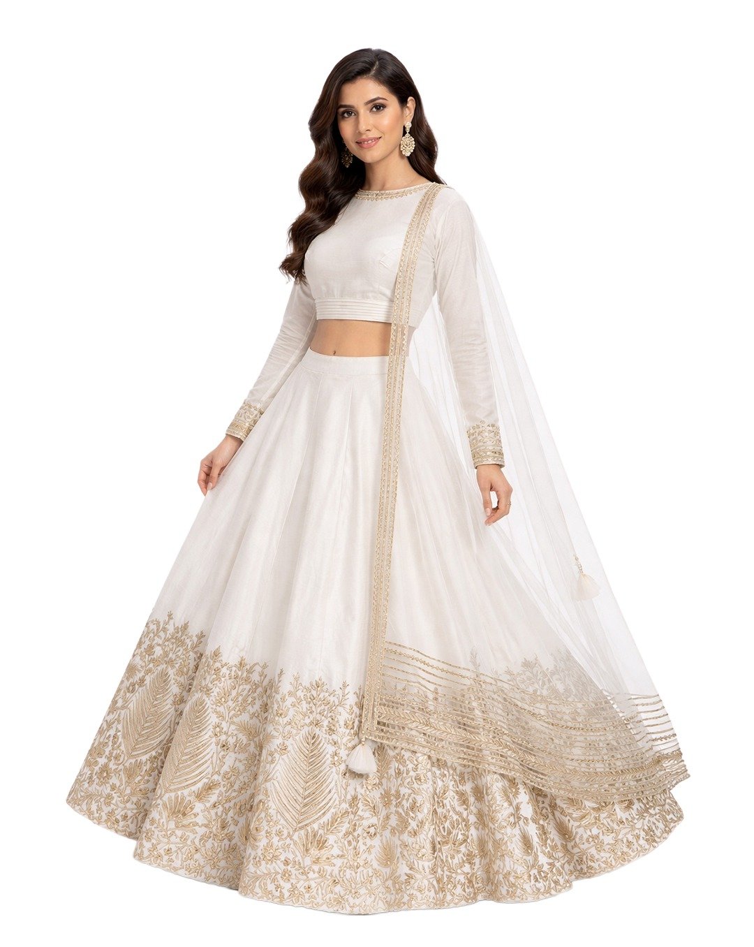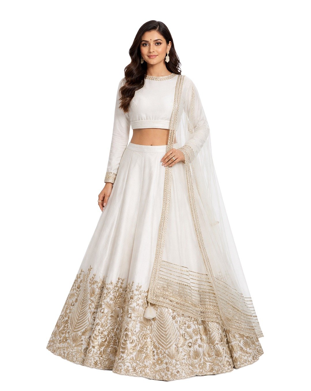 Stylish lehenga featuring premium leather detailing, modern craftsmanship, bold design, perfect for festive wear, fashion events, statement ethnic outfits, contemporary style.